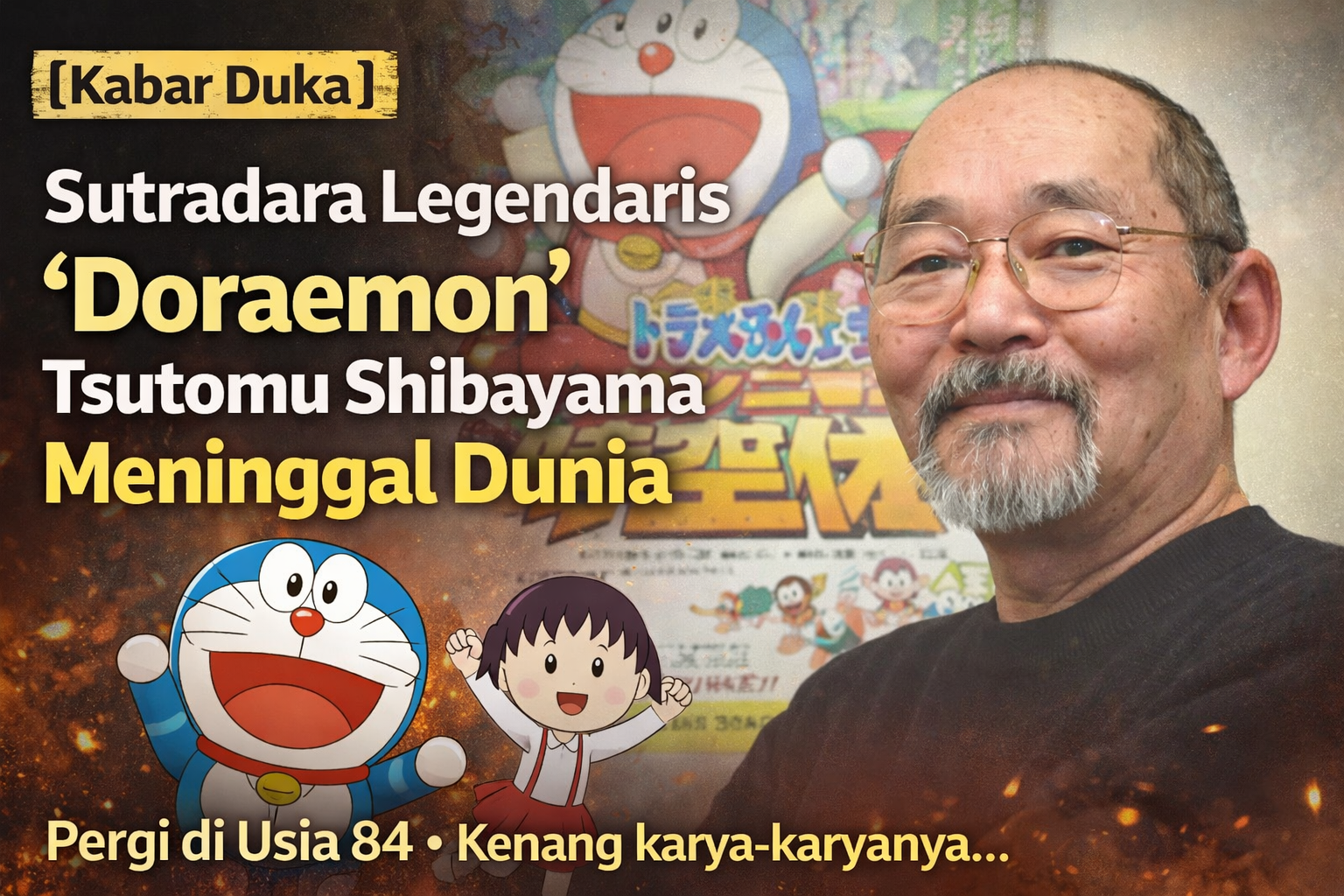 Dunia anime Jepang berduka atas wafatnya sutradara legendaris Tsutomu Shibayama pada usia 84 tahun akibat kanker paru-paru.