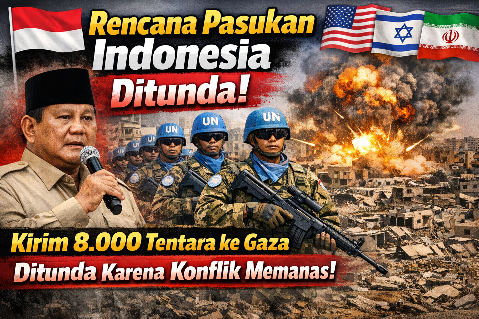 Pemerintah Indonesia secara mengejutkan menunda rencana pengiriman pasukan besar ke Gaza dalam misi “International Stabilization Force (ISF)”. Presiden Prabowo Subianto menyatakan bahwa rencana tersebut kini “ditahan sementara” karena situasi di Timur Tengah yang semakin memanas.
